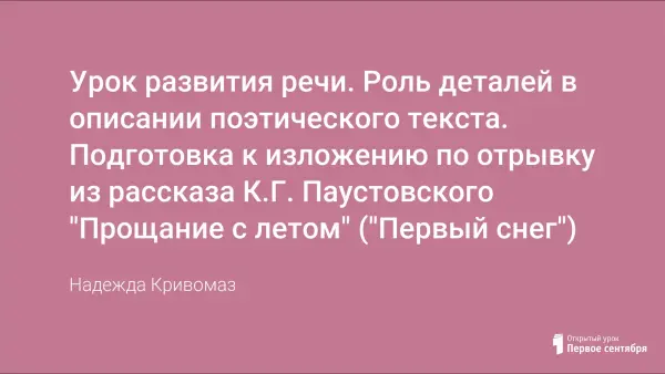 В статье автор показывает значение деталей в художественном описании предмета, готовит учащихся к написанию изложения, совершенствует умение отбирать необходимый материал для изложения.