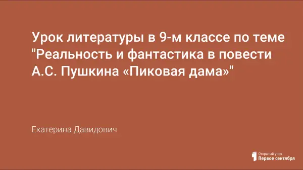 Урок внеклассного чтения по теме "Реальность и фантастика в повести А.С. Пушкина "Пиковая Дама" в 9-м классе был подготовлен на основе программы по литературе. На уроке использовался дифференцированный подход. Для формулировки выводов использовались опорные карточки. Для оценки усвоенного материала в конце урока был проведён контрольный тест.