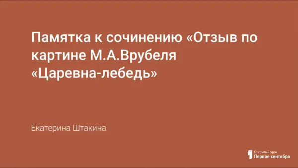 Памятка к сочинению «Отзыв по картине М.А.Врубеля «Царевна-лебедь»