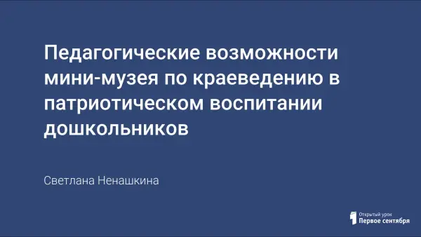 Любовь к родному краю, дому, городу невозможно воспитать без определённых знаний о нём. Цель работы заключается в том, чтобы с помощью музейной педагогики организовать "мини-музей". Именно музейная педагогика может представлять собой конструктивную альтернативу традиционной организации образовательного процесса дошкольного учреждения.