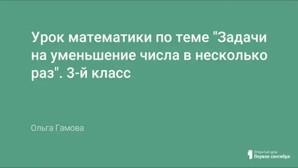 Цель урока: познакомить с решением простых задач на уменьшение числа в несколько раз; закрепить знание таблицы умножения и деления на 3 и 4; развивать математическую речь, мыслительные операции, познавательный интерес.