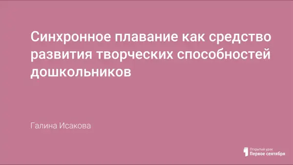 Основы творческого проявления детей закладываются уже в младшем дошкольном возрасте. Для ребенка главное - впечатление. Достичь такой цели можно, если сделать занятие интересным, разбудить творческую активность. В данной статье рассказывается, как привлечь детей к занятию синхронным плаванием.