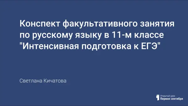 Как успешно сдать ЕГЭ по русскому языку? Этот вопрос волнует и учеников, и преподавателей. Факультативные занятия помогают повторить и обобщить изученный материал по различным разделам языкознания. Конспект занятия включает следующий комплекс заданий: лексическая работа, орфоэпия, орфографический тренинг, грамматика, задание на проверку пунктуационных и орфографических навыков по определенной теме, комплексный анализ текста.