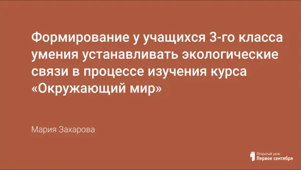 Познание мира невозможно без познания связей и отношений, существующих в нем. Это относится и к экологическим связям. Изучение этих связей играет важную роль в развитии у детей логического мышления, памяти, воображения, речи. В процессе познания природы младшими школьниками необходимо, чтобы они осознали разнообразные экологические связи. Для успешного изучения школьниками окружающего мира необходимо формировать умение устанавливать экологические связи в процессе изучения данного курса.
