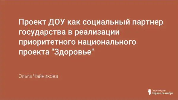 Государство и общество прямо заинтересованы в становлении здоровой личности (о чем свидетельствует национальный проект «Здоровье»), но не уделяют достаточного внимания здоровью дошкольника. Цель программы – создание системы деятельности ДОУ по поддержанию, сохранению и укреплению здоровья воспитанников.