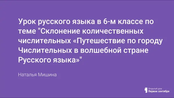 Урок-знакомство с новым материалом о склонении количественных числительных. Урок состоит из теоретической (работа с таблицей "Склонение количественных числительных") и практической (работа с текстом; склонение количественных числительных) частей.