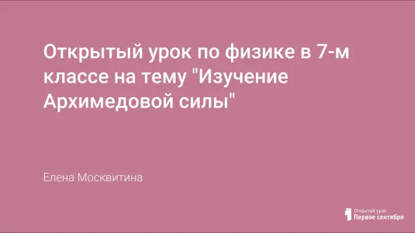 Представлен подробный сценарий урока, сопровождающийся компьютерной презентацией. Урок построен по технологии деятельностного метода. В итоге дети формулируют закон Архимеда, который затем применяют при решении задач.