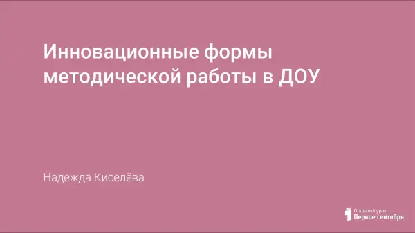 Статья адресована руководителям ДОУ, в которой представлены инновационные формы методической работы с педагогами. Инновационная методическая работа - часть профессионально-управленческой, педагогической деятельности, отличительными особенностями которой являются: обеспечение работы образовательного учреждения в режиме развития.