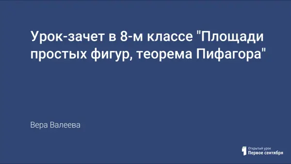 Целью данного урока является предварительный контроль усвоения темы «Площади простых фигур. Теорема Пифагора» перед итоговой контрольной работой.
