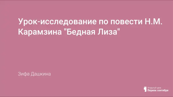 Представлен конспект урока-исследования по литературе в 8-м классе, который построен на основе анализа повести Н.М.Карамзина «Бедная Лиза». Реализует возможность развить понятие о лейтмотивах, подробно остановиться на основных мотивах повести; воспитать вдумчивого читателя, правильное отношение к материальным ценностям.