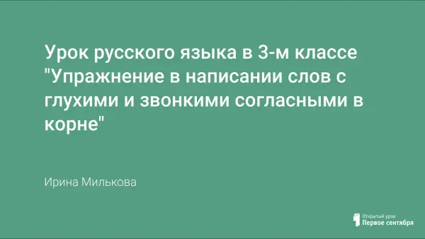 Представлен конспект урока русского языка в 3-м классе по теме "Упражнение в написании слов с глухими и звонкими согласными в корне".