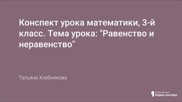 Конспект урока математики, 3-й класс. Тема урока: "Равенство и неравенство"