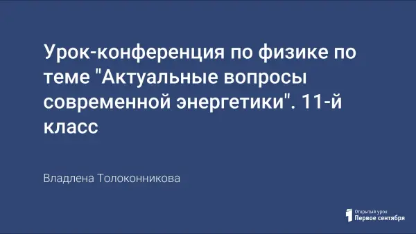 Урок-конференция по физике по теме "Актуальные вопросы современной энергетики". 11-й класс