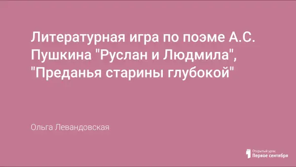 Данная игра проводится в 5-м классе как урок обобщения и систематизации полученных знаний. Игроки делятся на две команды, которые отвечают на вопросы поочередно. Содержание урока разбито на несколько блоков: конкурс капитанов, лексическая работа, мифические персонажи, история Головы, соперники Руслана, история Финна, теория литературы, жанр поэмы, конкурс рисунков.