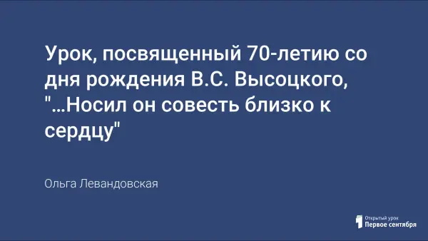 Урок знакомит учащихся с биографией В.С. Высоцкого,опираясь на воспоминания его родных и близких. Разнообразие материала позволяет составить полное представление о творчестве и личности В.С. Высоцкого.