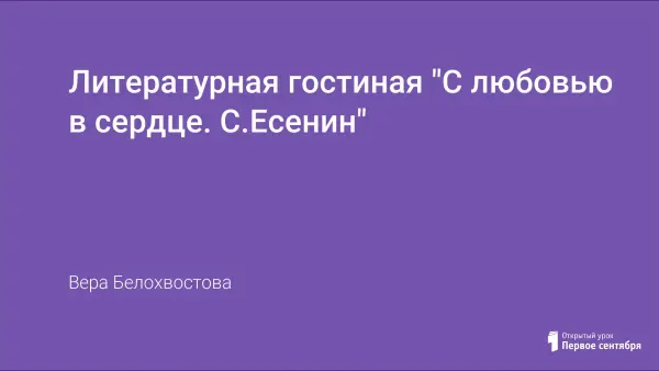 Представлен элективный курс "В литературу с любовью и пониманием". Литературная гостиная "С любовью в сердце", С.Есенин.
