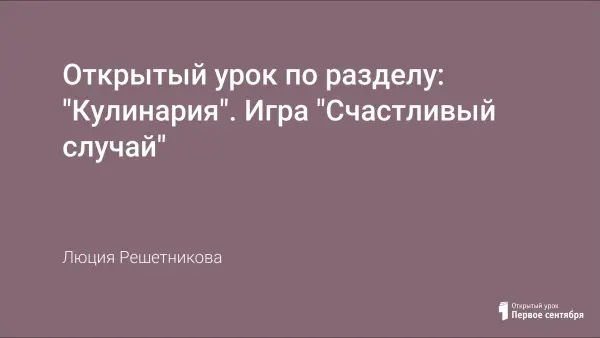 Игра на уроках технологии - важнейший путь включения детей в учебную работу, способ обеспечения эмоционального отклика на воспитательные воздействия. Данный урок, проводимый в форме игры, позволяет повторить, закрепить знания учащихся по кулинарии.