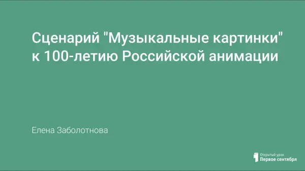 Сценарий посвящен 100-летию Российской анимации или мультипликации. Вы любите мультфильмы? Как я рада, что вы любите мультфильмы! Я тоже их очень люблю. Добрые и смешные, трогательные и серьезные. А еще бывают музыкальные, в которых случаются самые расчудесные чудеса! Слова здесь не нужны. Звери, птицы, предметы в музыкальных мультфильмах разговаривают самыми невероятными звуками, мелодиями и ритмами, которые придумали композиторы для своих любимых слушателей – детей.