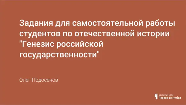 Целью и задачей выполнения самостоятельных заданий по курсу "Отечественная история" является приобретение умения получать новые эмпирические, теоретические и аксиологические знания, их систематизировать и концептуализировать; оперировать базовыми понятиями, теоретическими и ценностными конструктами учебного курса; решать познавательные задачи; логично выстраивать устные и письменные тексты.