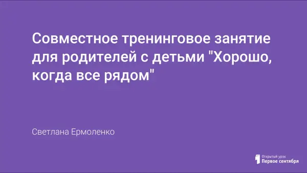 Занятие направлено на коррекцию взаимоотношений между детьми и родителями, формирования взаимопонимания между ними. Способствует созданию положительного эмоционального фона, атмосферы доверия. Занятие рассчитано на 1–1,5 часа, построено с элементами социально-психологического тренинга.