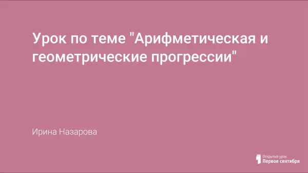 В работе представлен конспект обобщающего урока для 9-го класса по теме "Арифметическая и геометрическая прогрессии". Неотъемлемой частью урока является презентация в Power Point, позволяющая полностью отказаться от доски. Приоритетная цель урока воспитательно-развивающая: развивать познавательный интерес к предмету, воздействуя на стремление старшеклассников к самопознанию.