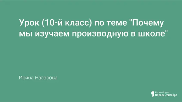 Неотъемлемой частью урока является презентация в Power Point, позволяющая полностью отказаться от доски. В работе представлен опорный конспект, позволяющий увеличить темп урока и выступления обучающихся, доказывающих нужность знаний о производной в жизни и профессии.