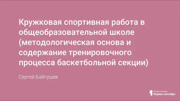 Кружковая спортивная работа в общеобразовательной школе (методологическая основа и содержание тренировочного процесса баскетбольной секции)