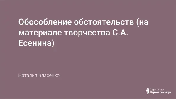 Работа знакомит с изучением обособленных обстоятельств (по произведениям С.Есенина).