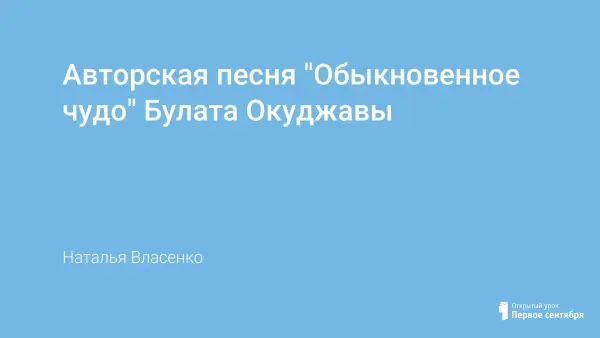 Цель внеклассного мероприятия познакомить учащихся с авторской песней на примере творчества Б.Окуджавы. В ходе беседы стимулируется развитие художественного мировоззрения, эстетического и нравственного сознания учащихся. Используя силу воздействия авторской песни, решается задача формирования личности учащихся, нравственных убеждений, патриотизма.