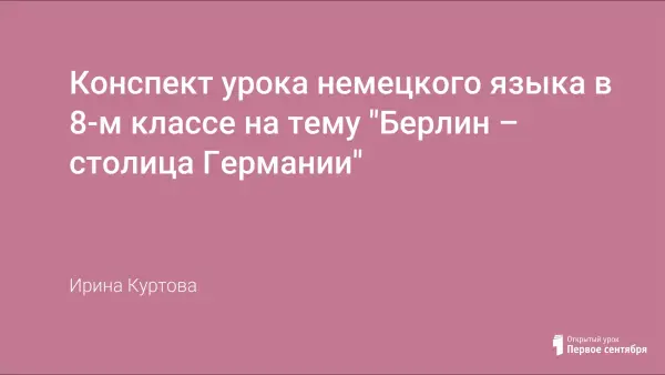 Конспект урока немецкого языка в 8-м классе по теме «Берлин – столица Германии» с использованием мультимедийной презентации. Применение информационных технологий на уроке расширяет возможности творчества учителя и учащихся, помогает более красочно и наглядно представить страноведческий материал, повышает интерес к предмету.