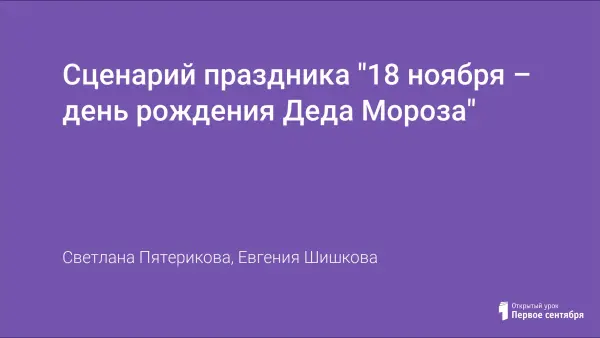 В 2005 году впервые 18 ноября был объявлен днем рождения Деда Мороза, персонажа, без которого немыслим Новый год. Предлагаем вам отметить этот день вместе с детьми 1–4-х классов, в обстановке уважения к русским традициям, к пожилым людям. Совершить виртуальное путешествие в дом Деда Мороза в Великом Устюге. Учить детей не только получать подарки от Деда Мороза, но и дарить сюрпризы ему самому.