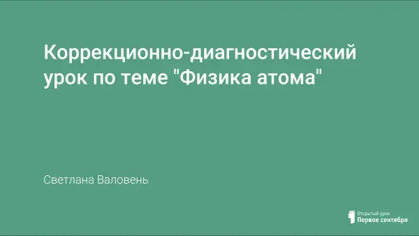 Данный обобщающий урок по теме «Физика атома» является примером одного из видов коррекционно-диагностического занятия.