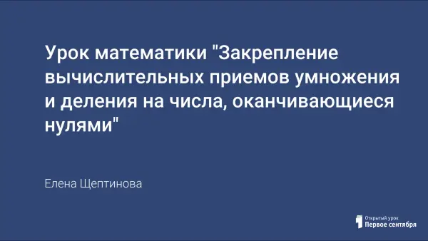 Одной из задач преподавания математики в начальной школе является формирование у учащихся сознательных и прочных вычислительных умений, доведенных до навыков. Данный урок закрепляет вычислительные приемы умножения и деления на числа, оканчивающиеся нулями.