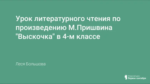 Урок литературного чтения по произведению М.Пришвина «Выскочка» рекомендован для проведения в 4-м классе по программе «Школа России». Это первый урок в разделе «Природа и мы», который готовит детей к ознакомлению с другими произведениями о природе. Урок носит ярко выраженный воспитывающий и коррекционный характер. В помощь учителю предложен и подробный самоанализ проведённого урока.