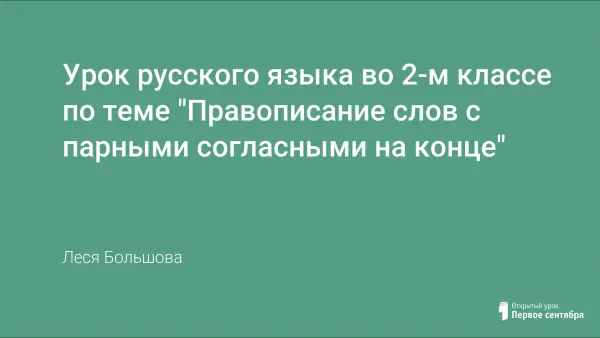 В данной статье представлен конспект урока русского языка по теме «Правописание слов с парными согласными на конце », рекомендован для проведения во 2-м классе по программе «Школа 2100» и «Школа России». Цель урока – совершенствовать умение проверять парные звонкие и глухие согласные на конце слова, развивать мышление и память.