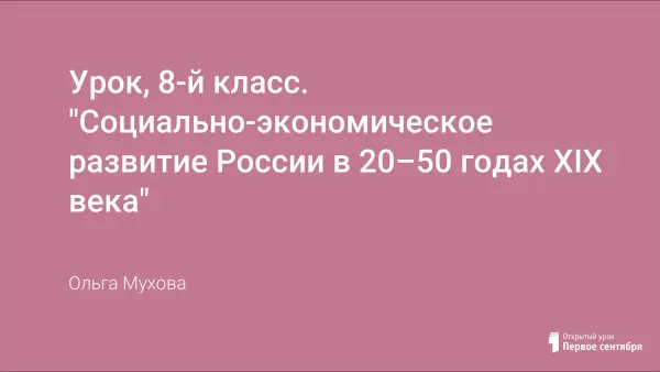 Урок истории для учащихся 8-го класса на тему показывает как шло развитие России в первой половине XIX в.; знакомит учащихся с основными тенденциями социально-экономического развития России.