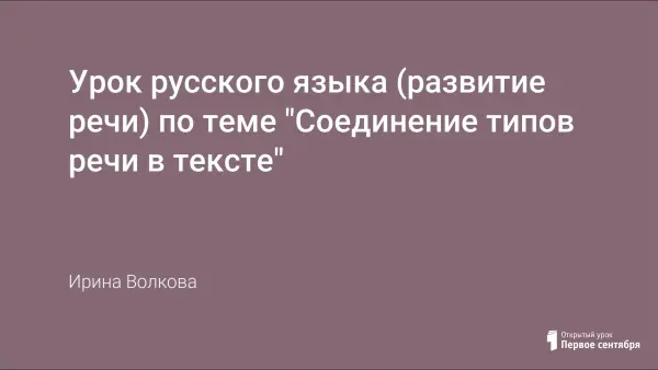 Материал урока позволяет проверить знание признаков понятий "текст" и "тип речи", умение подводить конкретный текст под понятие типа речи, проверить знание строения текста типа описания предмета и повествования, находить в тексте смешанного типа описательные и повествовательные части и уметь объяснить целесообразность их соединения, исходя из основной мысли текста; развивает речь (обогащение и усложнение словарного запаса, усиление коммуникативных свойств речи, овладение художественными образами и выразительными свойствами языка) и мышление (уметь анализировать, сравнивать, выделять главное, учить строить аналогии, обобщать, систематизировать, доказывать, опровергать, определять и объяснять понятия, ставить и разрешать проблемы).