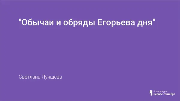 Представлен интегрированный урок по народной культуре, ИЗО и музыки для 5-х классов. Это внеклассное мероприятие можно использовать с целью обобщения и закрепления пройденного материала по теме "Егорьев день". В нем используется календарно-обрядовая поэзия, театральные сценки и песенно-музыкальный фольклор. Непосредственное "проживание" всех этапов этого обряда, позволяет лучше понять его и прочувствовать.