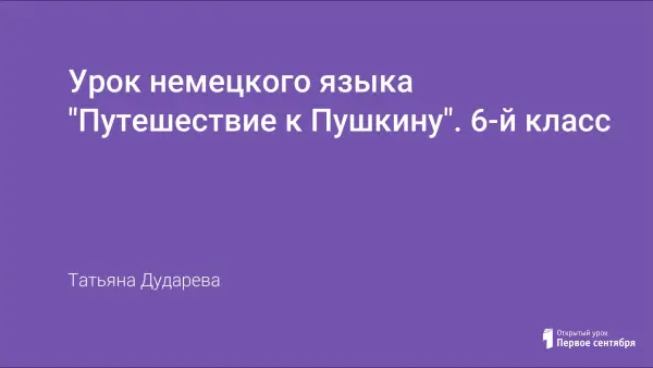 Урок в рамках проекта «И в тайне – ты почиешь, Русь!», главная суть которого заключается в погружении учителей и учащихся в определённую историческую эпоху. Урок-путешествие для учащихся 6-го класса служит знакомству учащихся с творчеством А.С. Пушкина, развитию умений работать с учебным текстом, читать его, ориентироваться в тексте при поиске ответов на вопросы, выполнять тестовые задания по содержанию прочитанного, развитию интереса учащихся к немецкому языку.