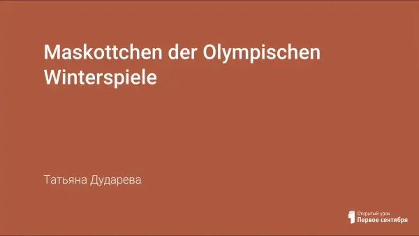 Материал урока может быть использован в качестве дополнительного материала при изучении темы «Спорт». Задача учителя – познакомить учащихся с олимпийским движением, талисманами зимних олимпийских игр. Повышает у учащихся интерес и мотивацию к изучению немецкого языка, расширяет кругозор, закрепляет знания.