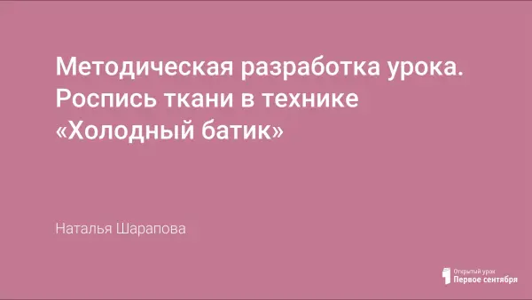 Актуальность выбранной темы определяется тем, что этот вид искусства очень востребован в наше время. Изделия, выполненные с применением техники батик, являются украшением одежды, широко применяется в оформлении интерьера (шторы, скатерти, пастельные принадлежности и др.) Основной целю урока, является знакомство учащихся с техникой росписи ткани «холодный батик».