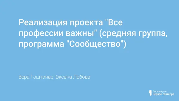 Реализация проекта "Все профессии важны" (средняя группа, программа "Сообщество")