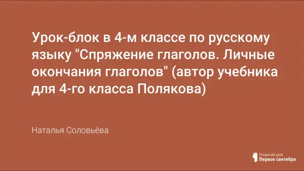 Урок-блок в 4-м классе по русскому языку "Спряжение глаголов. Личные окончания глаголов" (автор учебника для 4-го класса Полякова)