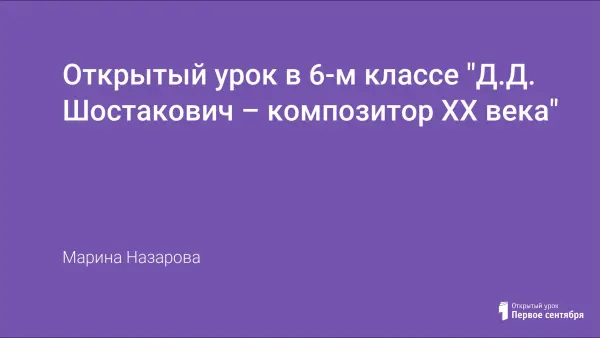 Представлен конспект открытого урока по музыке в 6-м классе по теме "Дмитрий Дмитриевич Шостакович - композитор ХХ века".