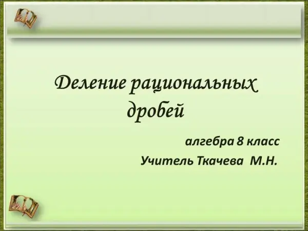 На уроке рассматриваются приемы нахождения частного алгебраических дробей. Цель урока: обучить приемам нахождения частного рациональных дробей; через выполнение заданий активизировать мыслительную деятельность учащихся; обеспечить закрепление ранее усвоенного теоретического материала.