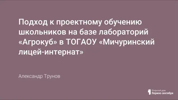 Подход к проектному обучению школьников на базе лабораторий «Агрокуб» в ТОГАОУ «Мичуринский лицей-интернат»