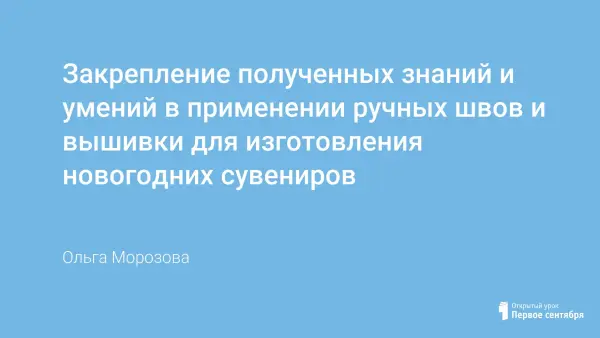 В данной работе рассматривается один из способов закрепления полученных начальных знаний и навыков в шитье и вышивке – изготовление новогодних сувениров-подарков. Работа проиллюстрирована фотографиями изделий и имеет инструкционные карты по их детальному выполнению.