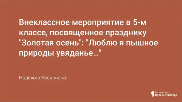 Вашему вниманию предлагается внеклассное мероприятие в 5-м классе, посвящённое празднику "Золотоя осень".