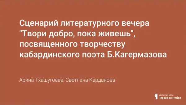 Сценарий литературного вечера "Твори добро, пока живешь", посвященного творчеству кабардинского поэта Б.Кагермазова