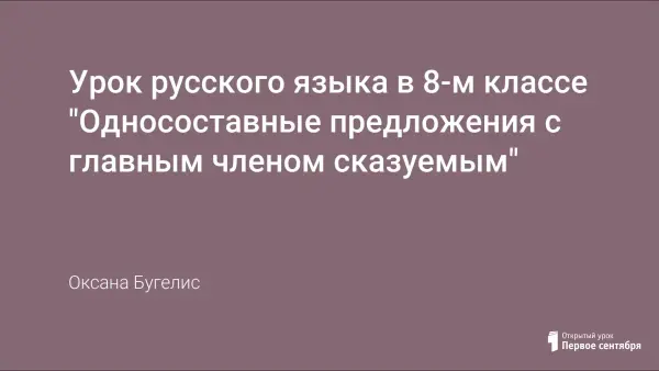 Представлен конспект урока русского языка в 8-м классе по теме "Односоставные предложения с главным членом сказуемым".